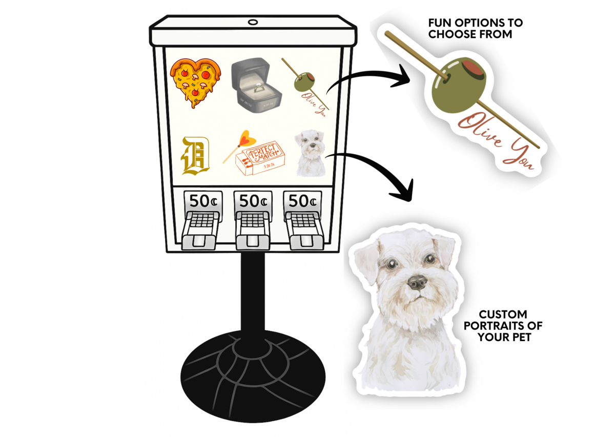 Sticker Vending MACHINE Rental & Custom Stickers serving the metro detroit area